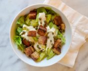 VEGAN CAESAR SALAD WITH TEMPEH CROUTONS